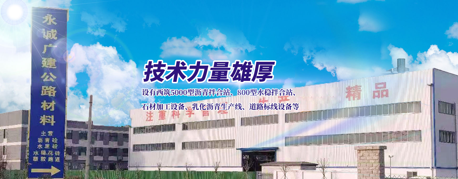 永誠廣建公路材料(山東)有限公司,坐落于商河縣賈莊鎮(zhèn)民營經(jīng)濟(jì)創(chuàng)業(yè)園,設(shè)有西筑5000型瀝青拌合站、800型水穩(wěn)拌合站、石材加工設(shè)備、乳化瀝青生產(chǎn)線、道路標(biāo)線設(shè)備等